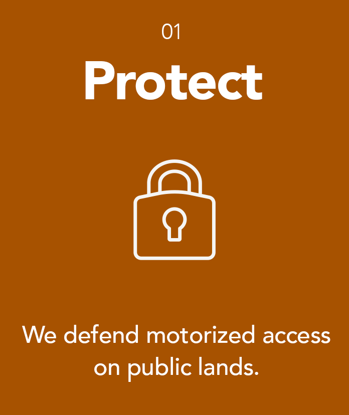 “Protecting Trails for Everyone” is not just our mission, it’s our promise. But, we can’t do this alone, we need you! If you love trails like we do, would you consider joining us in protecting the freedom to ride by supporting our work? No gift is insignificant - large or small - all gifts helps us further our mission. Please consider partnering with us with a one-time donation, or better yet, an ongoing monthly gift. We need your help so the next generation of riders can enjoy the freedoms we have.